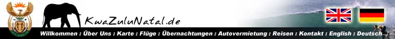 Unberührte Strände, Berge, grüne Mittelgebirge, die Grossen 5, stolze Zulu Dörfer , indische Tempel, englische Kolonialarchitektur und Deutscher- und skandinavischer Einfluß ganz gemischt - das ist KwaZulu Natal. Einstmals die Heimat von Mahatma Ghandi, Shaka Zulu und Winston Churchill - KwaZulu Natal kombiniert die Aufregung aller Aspekte zu jeden Besucher. Mit dem tropischen Einfluß ist die Provinz ein Ferienparadies während des ganzen Jahres. Diese Web-Seite bietet Ihnen Informationen über die verschiedenen Regionen dieser Provinz an; aufgeteilt nach Regionen klickbar auf der Karte unten - Reservierungen für Reisen, Safaris und Unterkünfte und andere Diensten nehmen wir gerne entgegen.
